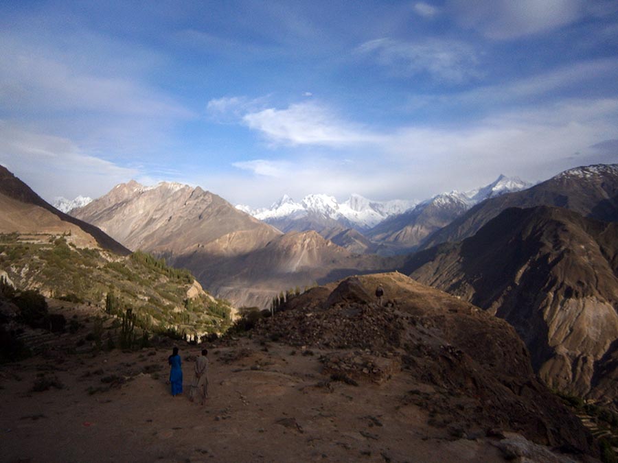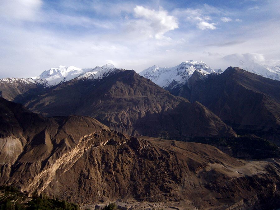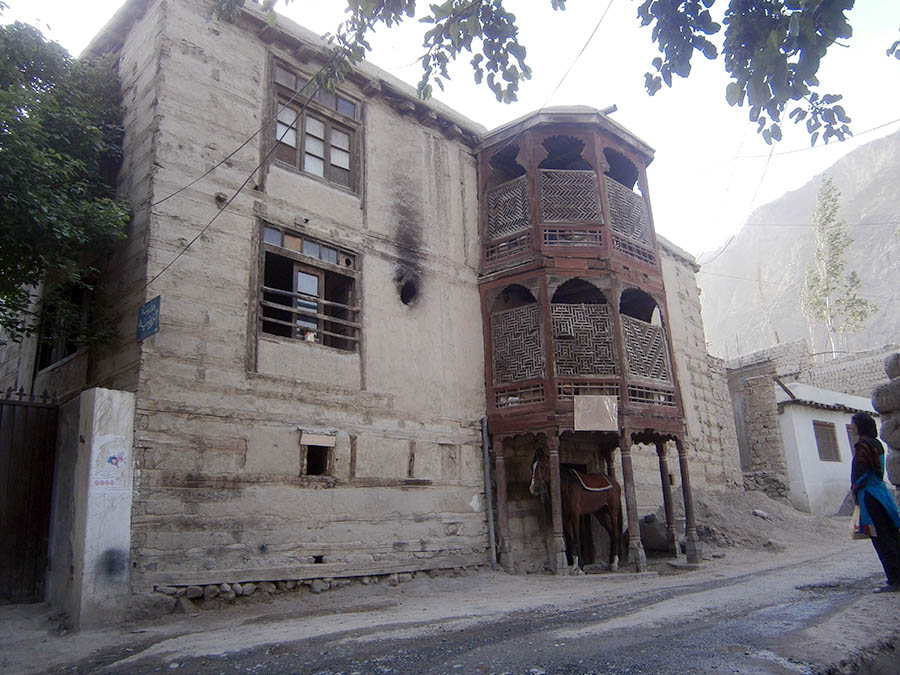 The old part of the town is amazing – stone houses with wooden carved windows and doors. The fort is an architectural piece of art too and behind it one can see peak Ultar (7400 m.)