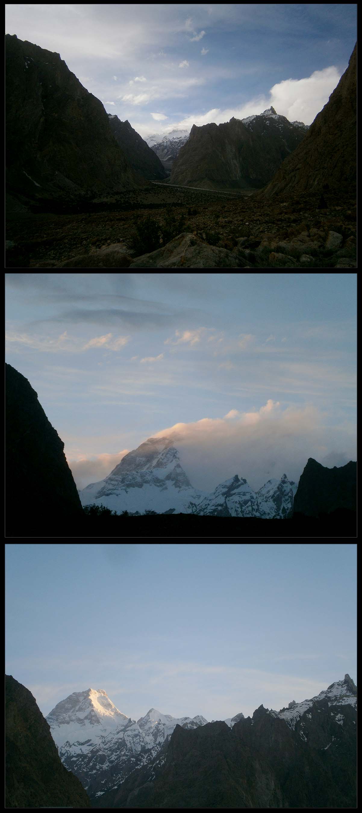 We manage to convince the policeman that follows us that there is no need for him to be like our shadow and just before sun-set we do a 2-hour walk above the village. I don’t need to repeat myself, but the views to the peaks are fantastic. Next to the village there is a “small”peak” 5000 m. that one can climb for about 5 hours and see from there K2 and Broad Peak.
