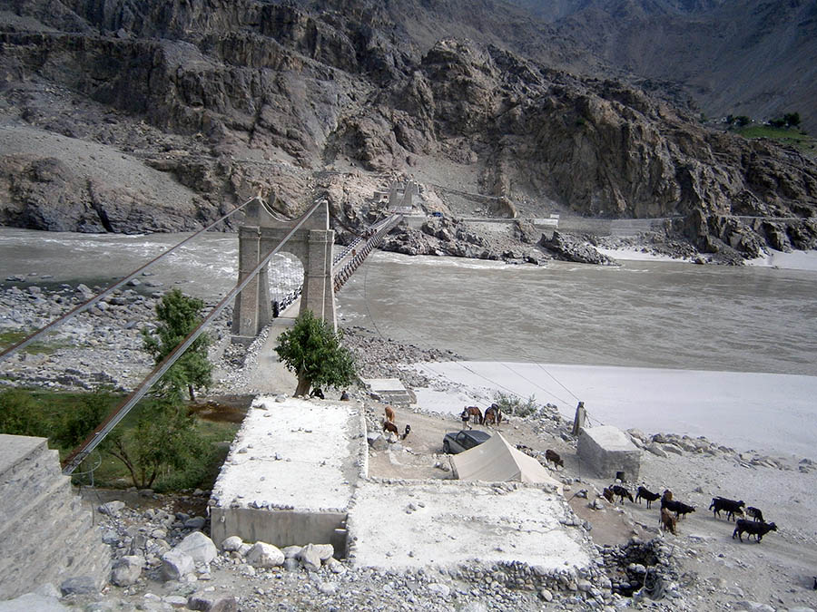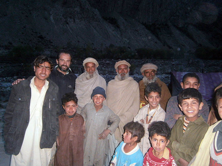 We are driving on dirt road that is quite dangerous, it is very narrow and sometimes we have to pass several suspension bridges that swing a lot. We stopped in one village on the road to load a cage full of about 20 hens. Two hours later we reach Hushe. Masherbrum rises next to the village. Snotty kids run everywhere. The air is crisp and cool, in the winter temperatures here fall 25 degrees Celsius below zero (-13 Fahrenheit).