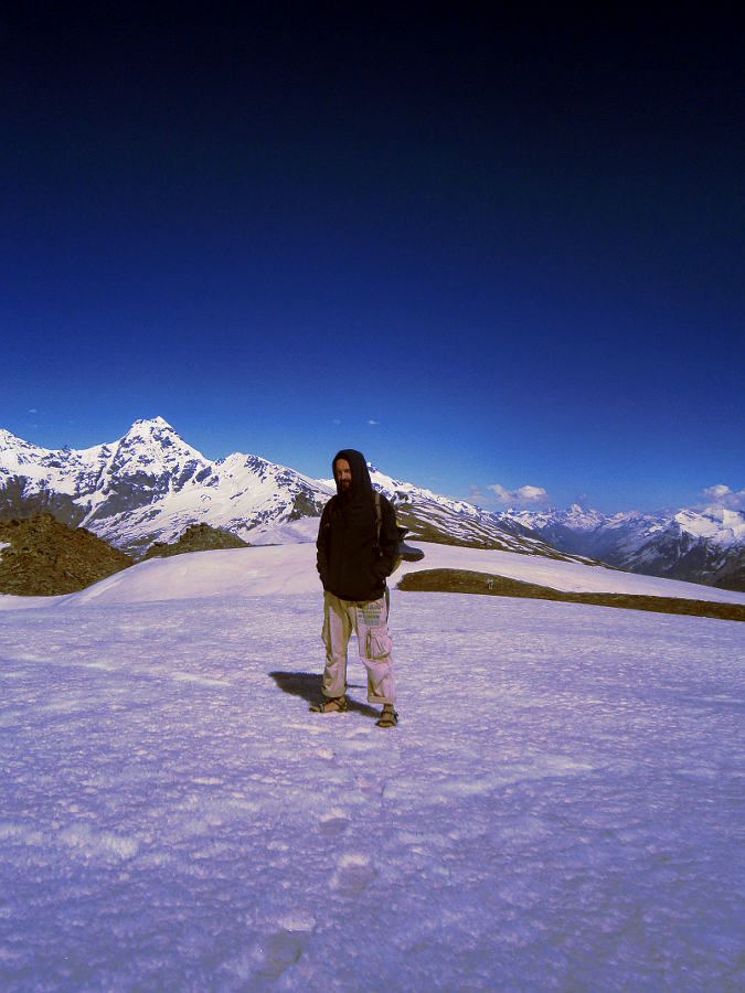 We climbed the peak (4500 m. or 14 800 feet) and started going down immediately. Next to the stupas we arrange a small Bday party with biscuits, chocolate and sandwiches but it starts getting dark so we prepare to go down. It took us 9 hours to climb the mountain and it looked like the peak was close by.