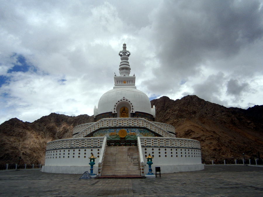 We somehow manage to reach the first village after the pass which is called Rumtse and everybody lay on the beds at the first tea house we see. After an hour sleep we feel refreshed and continue our trip to Leh. Near the road we see many Tibetan villages with thousands of white stupas, Buddhist rocky monasteries and there are even some trees. We find ourselves in a new and exciting lunar-like Ladkah and this makes me want to scream from joy.