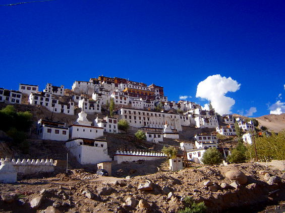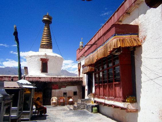 At Thiksey is situated the most impressive monastery in whole of Ladakh – people often compare it to the Potala Palace in Lhasa, Tibet. We see tens of white houses where the monks live and the main monastery building of the complex that are rising on a massive rock with a view towards the whole valley. The monastery was built 15-th century and belonged to the Gelug Pa sect (or the yellow hats). There are four main orders (or sects): Kagyupa, Sakyapa, Ningmapa, Gelugpa. Most monasteries in Ladakh belong to the Kagyupa Order – the Dragon Order Drukpa.