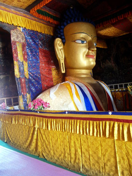 Few kilometers after Thiksey is Shey Palace where the royal family lived during 18-th century. At the moment it is being restored so there is nothing to see in it but the place looks well maintained and there is a gigantic two-storey statue of Buddha. In front of it there is a sign saying: “don’t take photos with Lord Buddha”. The ticket to enter costs 30 rupees (40 eurocents).