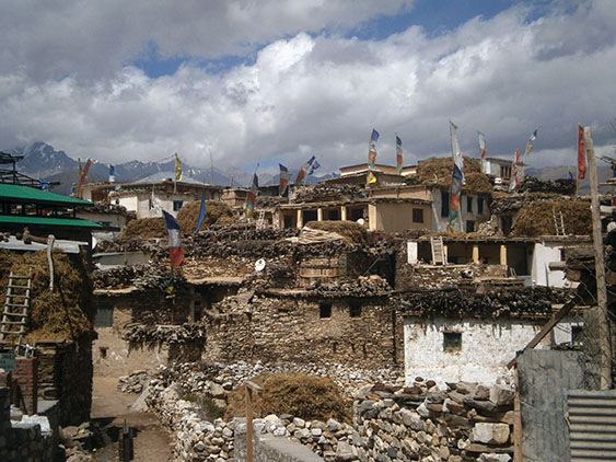 Nako Village with Buddhist flags