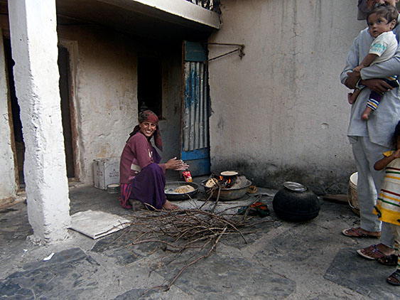 In the beginning we are bothered by the “houses” of the workers on the road who are living in the open, close to the rocks, under big tarpaulins next to the machinery. Here the scenery is still rocky desert and it gets pretty cold at night. The women dressed in saris obviously from South India, warm themselves on small fires. We noticed that the construction work and all the other work that doesn’t require qualification is done by people from the low castes or people who come from other parts of India. Locals usually don’t work.