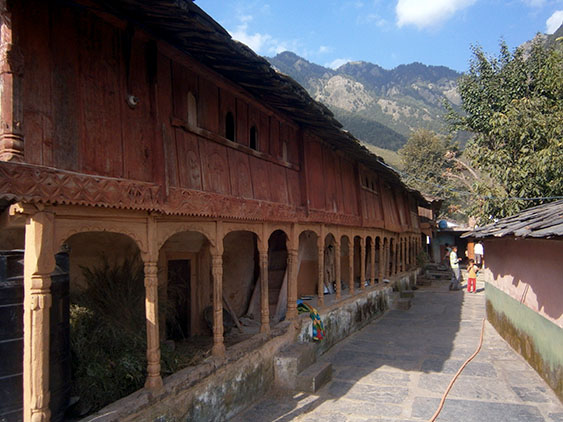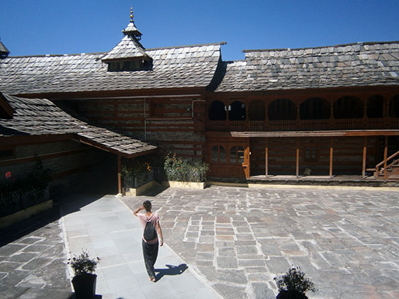 We climb the temple on some narrow staircase and suddenly we see it: a huge building with two tall wooden towers with stones. The Hindu temples at the Himalayas are very different than those in other parts of India and we are glad we took time to visit it.