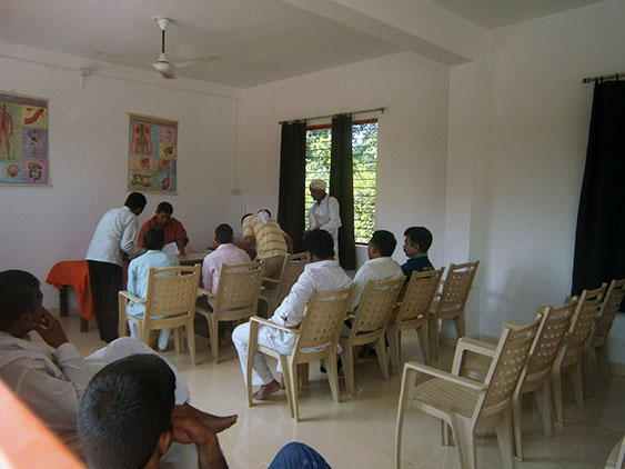 The main teacher accepts patients daily for free and prescribes them Ayurveda medicines. The people wait for hours on a cue to enter. While we are waiting to speak to him they serve us ten bananas and something that has a thick texture, black color and is very sweet.