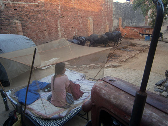 The next challenge is to cross Meerut which turns out to be huge and it takes us more than two hours and a couple of buses to go out of it. We are in a hurry and don’t even manage to buy food. In the last bus we took there was a show. First some villagers tried to enter inside with their huge sacks. Obviously they were not allowed to do it because when they threw them inside the check taker started to push them back and throw them out. Finally he managed to do it. The next part of the show started when we said we want to get off in the middle of nowhere and that we will camp in the forest. The people inside the bus didn’t want to let us do it and the driver didn’t stop till we reached a small village. In the meantime we were talking with aplomb, trying to make him stop, but without success.