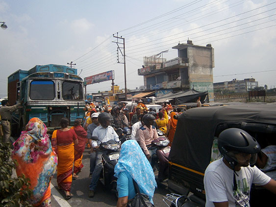 First a truck stops and takes us 40 km. further. Then two crazy guys stop. All the time they are chewing betel and their teeth and saliva are red. At one point they stop the car, leave us and turn back. Things with them happened as if by magic because they didn’t speak any English. We don’t have a map for the roads after Meerut and we don’t know how we will manage to go to Agra instead of Delhi. We see a young couple who invites us to go with them. They speak good English and lend us their iPhone so we manage to find the road we are looking for. They leave us at the right place – we were really lucky to meet them.