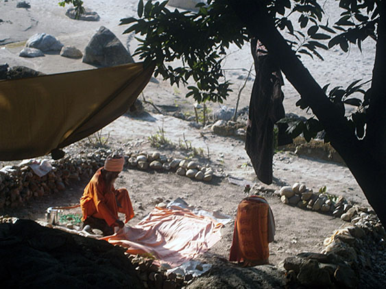 Baba Ji is followed by a younger Baba who is a very intelligent and nice young man whom we speak to for hours. In general we spend our days in close contact with the Baba and the gurus next door. Every day we hear them getting up at 4-5 a.m. to meditate. During the day we sit at the porch and gaze at Ganga in the humid, sticky air. In the evenings we eat together and sing kiratns. If before I had doubts whether enlightened minds exist nowadays, now I am sure they do and there are not so few.