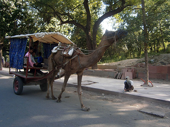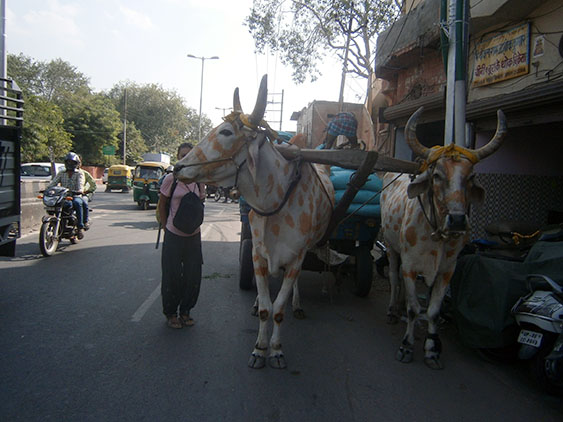 We spend the afternoon investigating the situation with the tickets for Taj Mahal. While we are walking in Agra we see some amazing vehicles including a giant two-wheeler pulled by two enormous white mules that have spots on their skin like those of giraffes. Sometimes I wonder if we are in India or in Alice in Wonderland?!