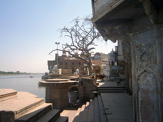 We cross the river with the boat, visit another temple which tires us immensely because of the crowds. It is believed here that every night Krishna and Radha come to the Nidhi Van temple to make love and one mustn’t go there at night under any circumstances.