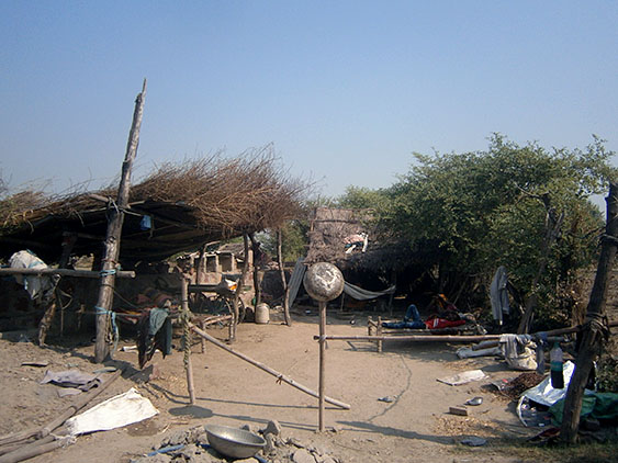 In the evening we reach some huts of villagers living next to the river. We find a place aside of the road and ask the people if we can pitch our tent here. They invite us at their house because there are snakes here according to them. Well it is not exactly a house, better said a shelter with few beds underneath it. They seem happy to be with us, but don’t want to bother us and leave us alone. After a while they bring chapatas with chili. They are really kind.