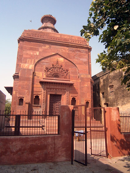 He adds that people from all religions are accepted well here. He also explains that the people who meditate are trying to open their third eye and see the divine light. He shows us around. Behind the building is the samghati (the tomb) of the main guru who died three years when he was 116 years old – another Indian mystery.