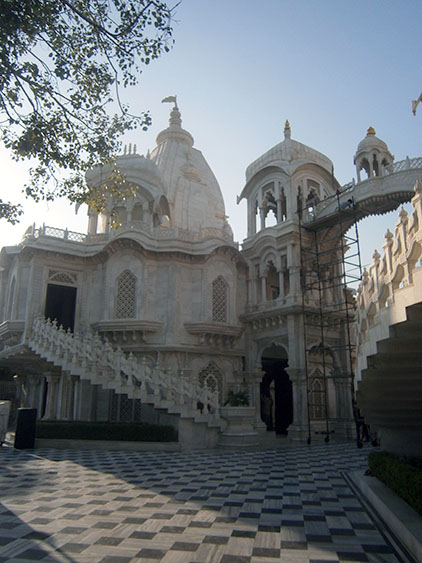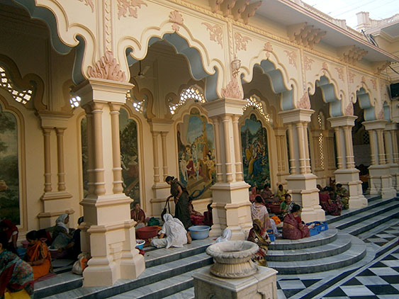 People who follow Gaudiya Vaishnava exist only to worship Krishna and Radha. Their goal is to unite with Krishna by practicing Bhakti Yoga – worshipping with love. Their main occupation is to sing and play instruments for Krishna. We also sing to the Murti (statue or idol of a deity or person in Indian culture) and then they prepare a very delicious lunch. People tell us of their life in Vrindavan – in their words it is a life where the Transcendental Vrindavan co-exists and Radha and Krishna dance in it at this very moment.
